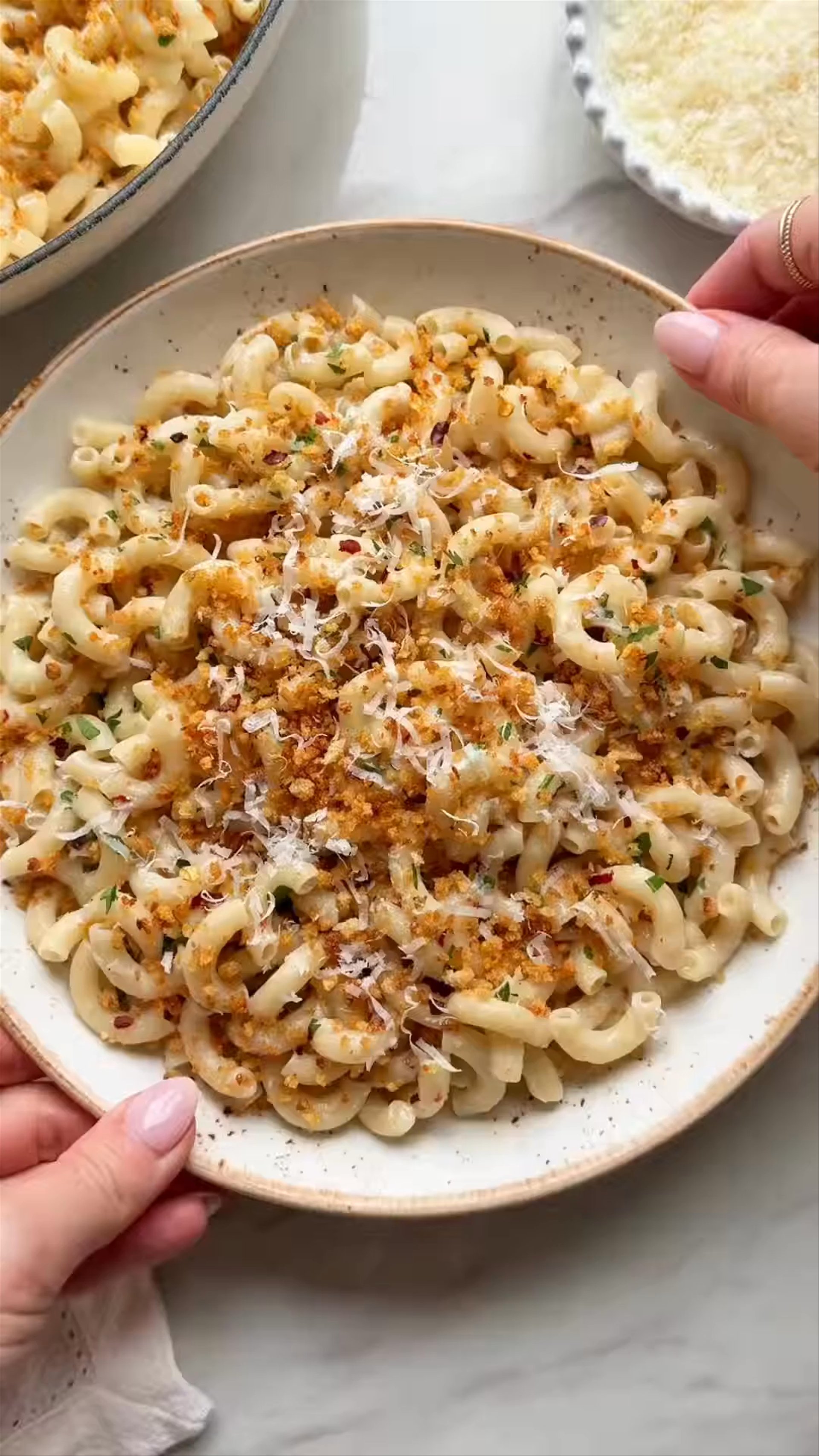 Top with toasted garlic panko breadcrumbs and remaining parsley.