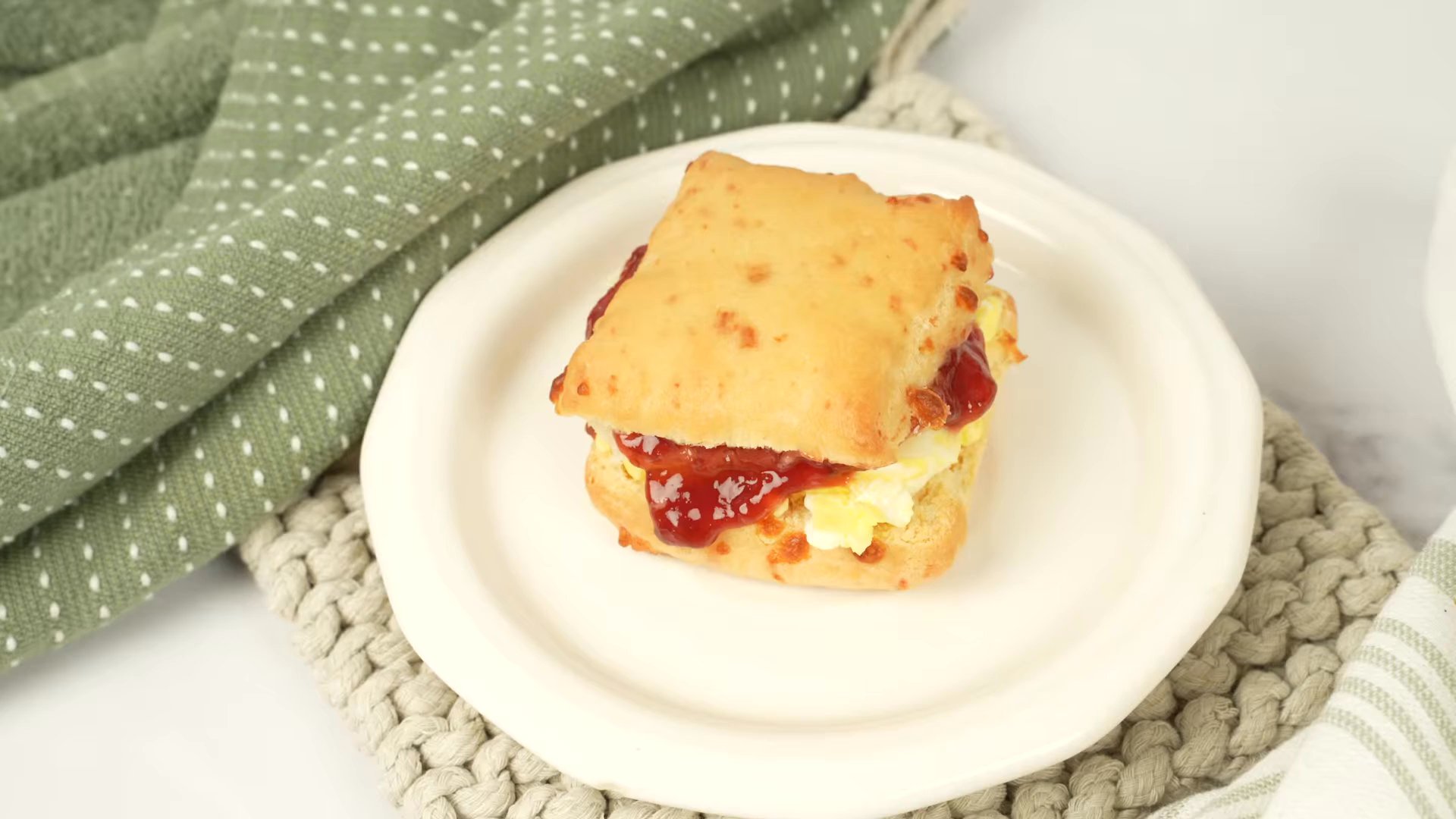 Scrambled Egg, Cheese, & Jam Biscuit Sandwich